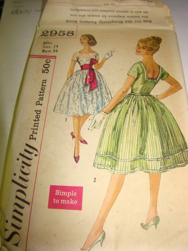 Simplicity 2958 Vintage 1950s Full Skirt Bodice Sewing Pattern Bust 34 Size 14 Ebay